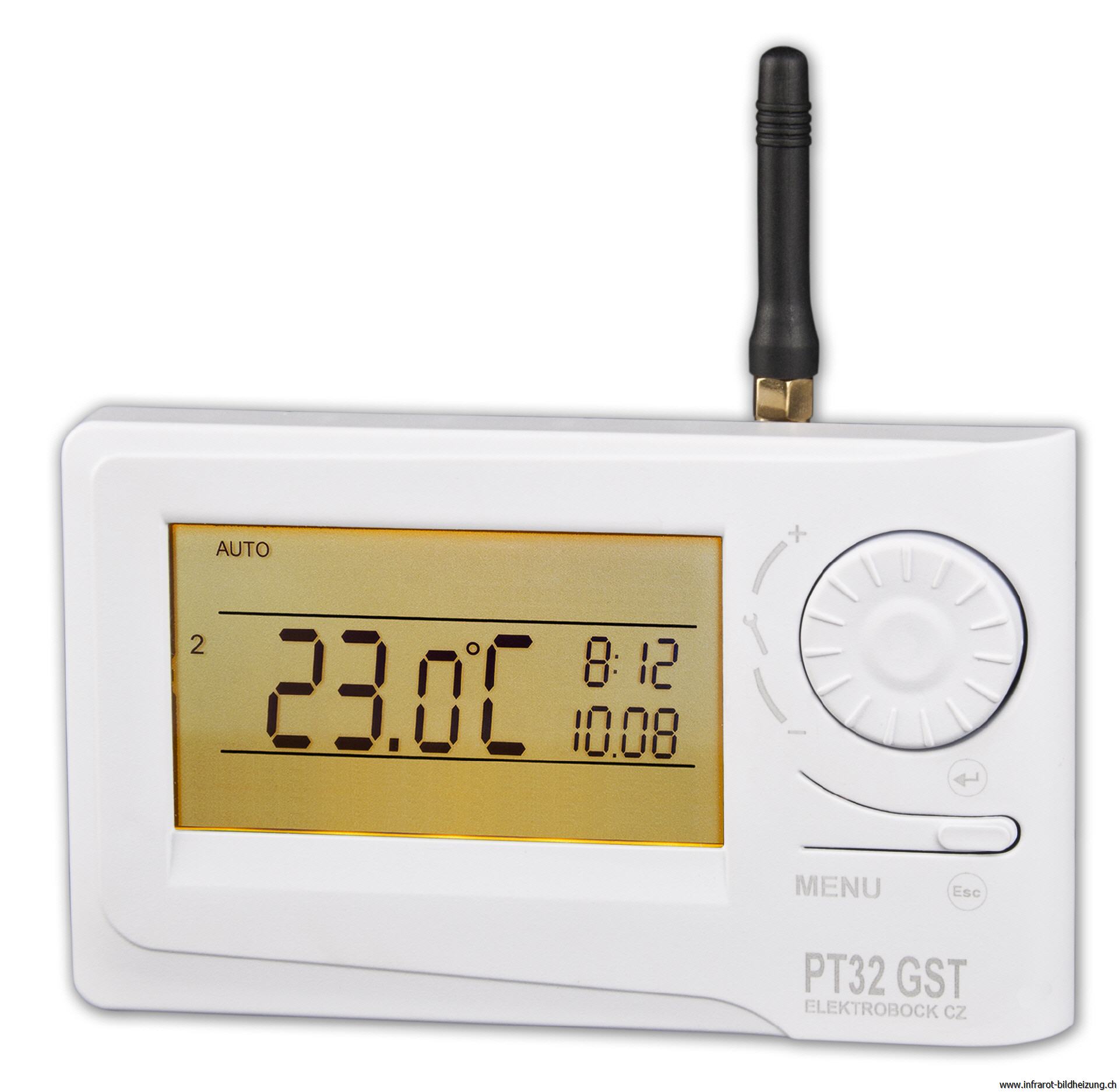 Der PT32 ist ein digitaler Raumthermostat mit einem integriertem GSM-Modul für eine ferngesteuerte Heizungsregelung.