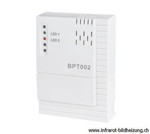 Der BPT002 ist zur steuerung von Infrarotheizungen, elektrischen Heizkörpern usw. geeignet. Der BPT002 schaltet aufgrund der vom Sender übermittelten Daten, den angeschlossenen Verbraucher aus und ein.
